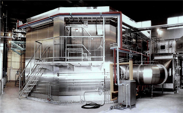 雙螺旋式壓榨機工作過程是:輸送螺旋將進入料箱的物料推向壓榨螺旋,通過壓榨螺旋的螺距減小和軸徑增大,并在篩壁和錐形體阻力的作用下,使物料所含的液體物(果汁)被擠壓出.擠出的液體從篩孔中流出,集中在接汁斗內.壓榨后的果渣,經篩筒末端與錐形體之間排出機外,錐形體后部裝有彈簧,通過調節(jié)彈簧的預緊力和位置,可改變排阻力和出渣口的大小,用來調節(jié)壓榨的干濕程度. 5、10、20噸/時壓榨機為雙螺旋轉,旋轉方向相反,對物料的壓榨力大而均勻,出渣口錐形體由液壓缸控制,調節(jié)油